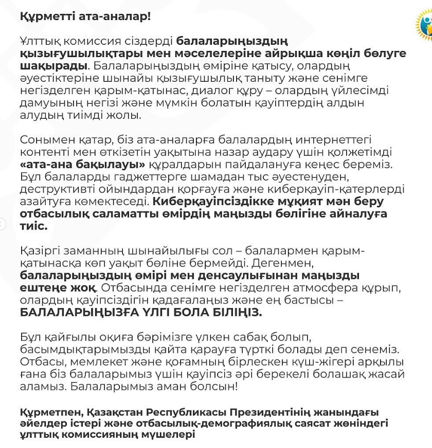 Ата-аналар назарына!