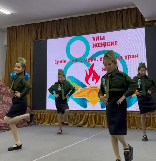 Ұлы Жеңістің 80 жылдық мерекесіне орай “ Ерлік - елге мұра,ұрпаққа ұран” атты ашық тәрбие сағатын 4 сыныптар өткізіп, оқушыларды өз Отанын сүюге,қазақ елінің майданда және тылда көрсеткен ерен ерлігін құрметтеп,жас ұрпақты ұмытпауға,елжандылыққа,Отанын қорғай білуге тәрбиелеу мақсатында өткізген тәрбие сағаты жоғары деңгейде болды. Сынып жетекшілері Баяхметова Гулизат Жанахметовна,Бекболатова Дана Қайролдановна, Қожаханова Жаныл Бектұрғановнаға алғысымыз шексіз.